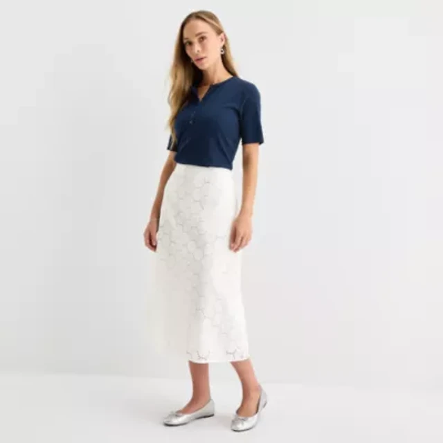 Liz Claiborne Womens Tall Midi Flared Skirt