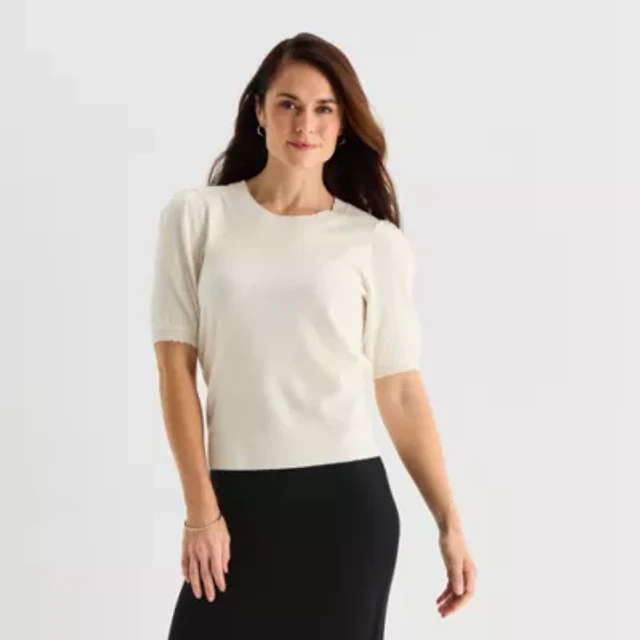 Liz Claiborne Plus Womens Crew Neck Embellished Short Sleeve Pullover Sweater