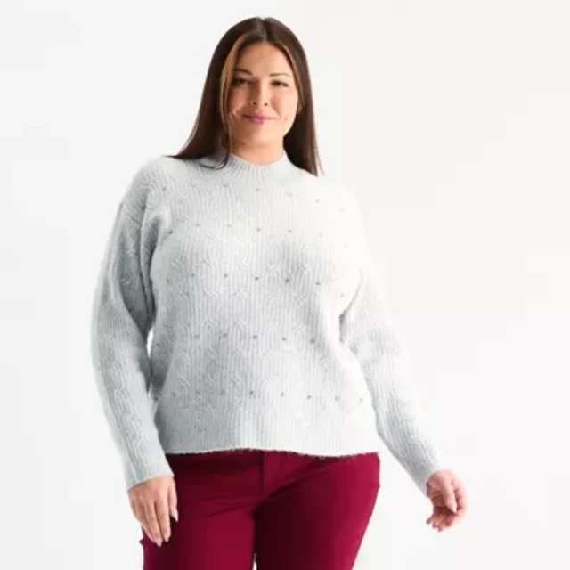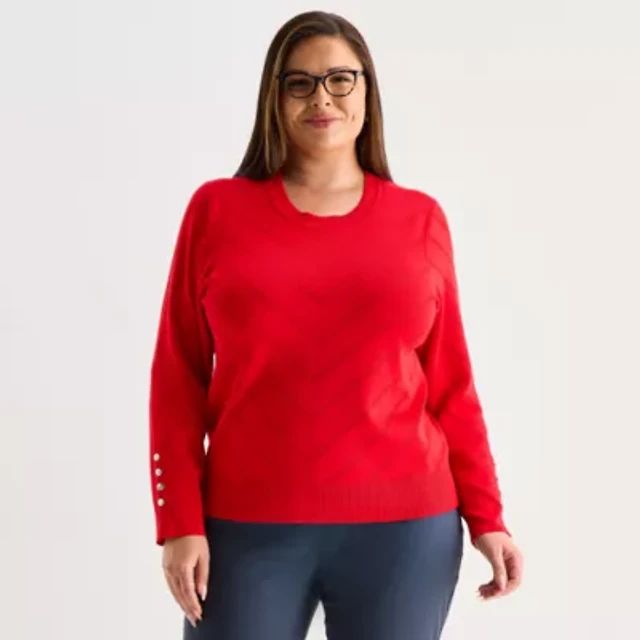 Liz Claiborne Plus Womens Round Neck Long Sleeve Pullover Sweater