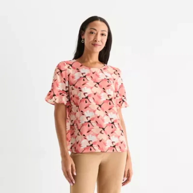 Liz Claiborne Womens Plus Crew Neck Short Sleeve Shell