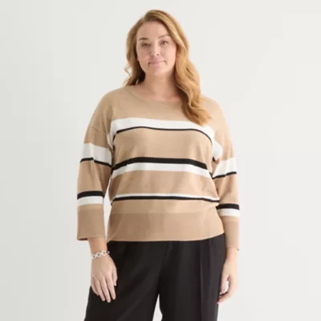 Liz Claiborne Plus Womens V Neck 3/4 Sleeve Floral Pullover Sweater