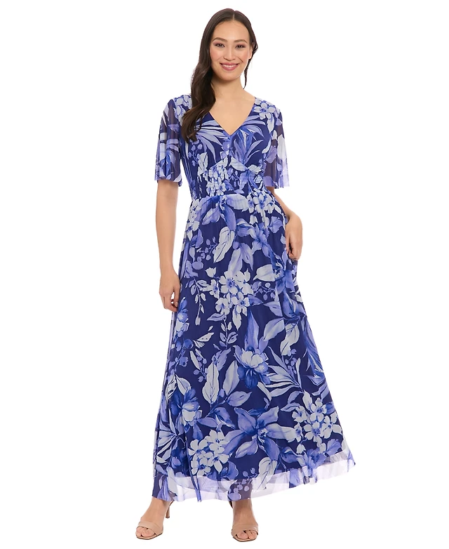 London Times Women's V-Neck Smocked Bodice Maxi Dress