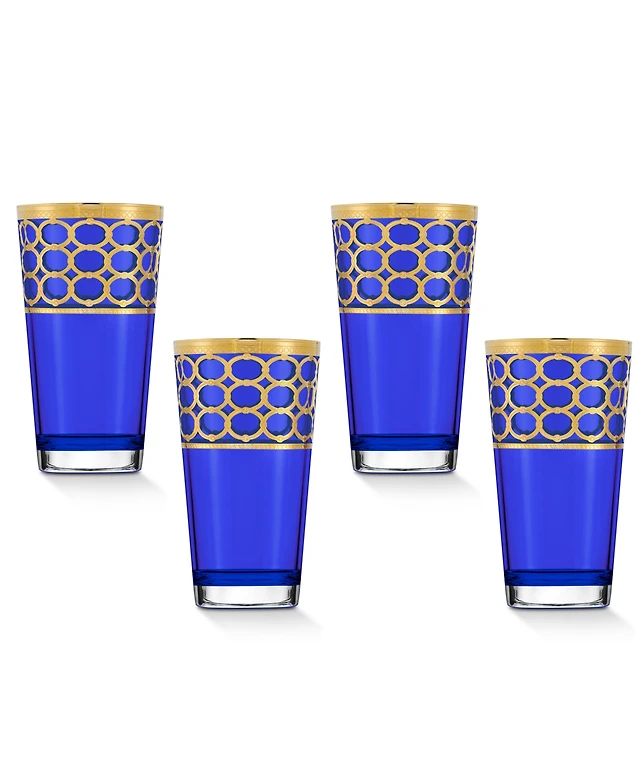 Lorren Home Trends Cobalt Blue Double Old Fashion with Gold-Tone Rings, Set of 4