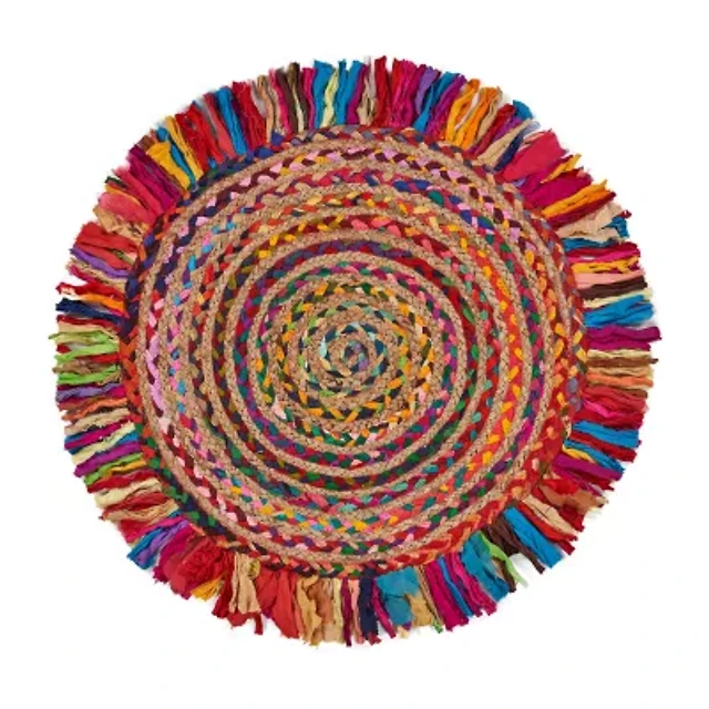 Halen Dia Geometric Braided Stain Resistant Indoor Round Accent Rug