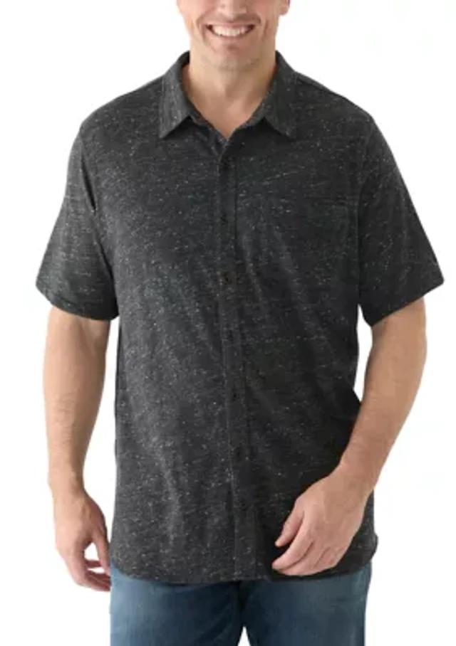 Big & Tall Short Sleeve Textured Stripe Camp Collar Shirt