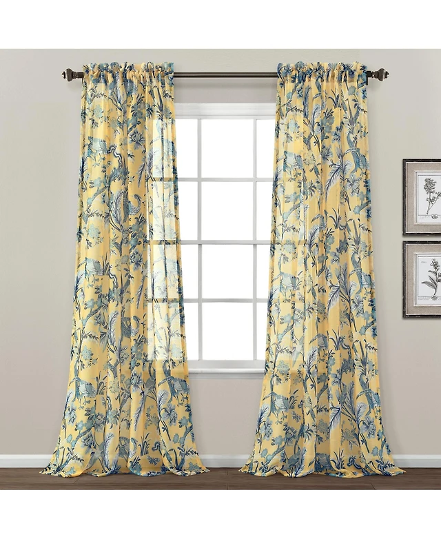 Lush Decor Botanical Bird And Flower Light Filtering Window Curtain Panels Pair 52"W x 84"L Multi - Bird Curtains For Bedroom
