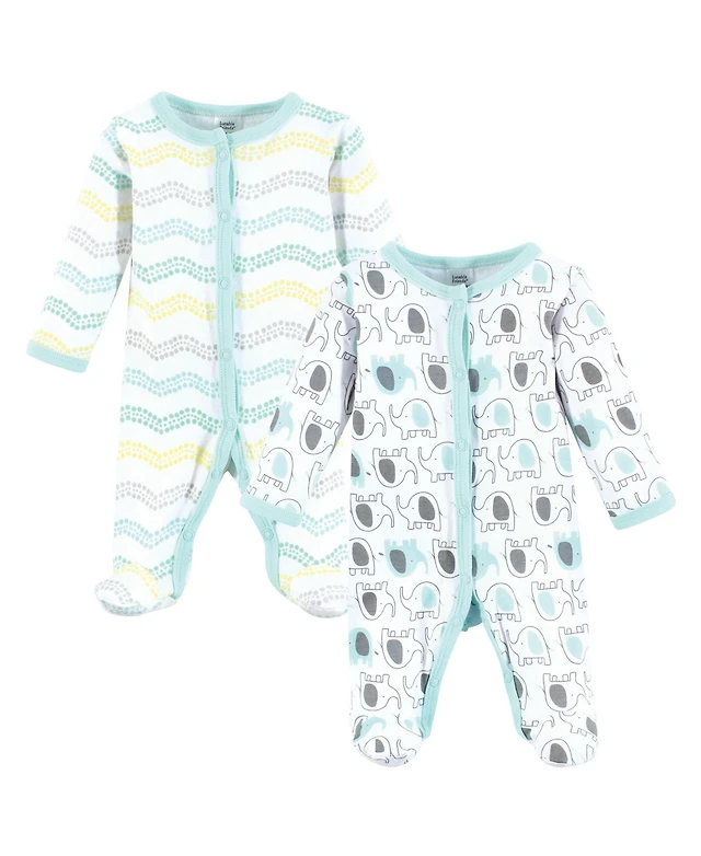 Luvable Friends Baby Girls Baby Cotton Snap Sleep Play 2pk Bird