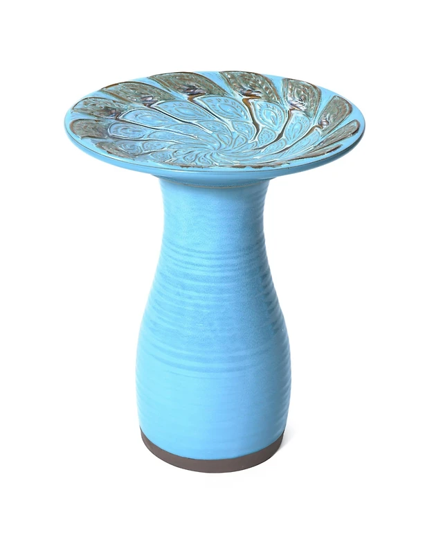 LuxenHome 29.5-Inch H Peacock Metal and Glass Outdoor Wall Decor