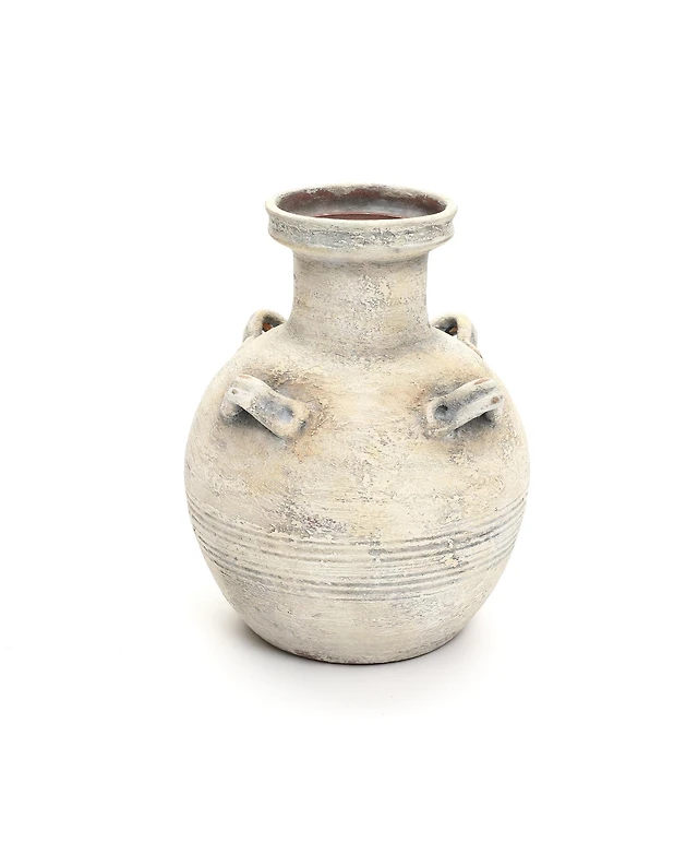 LuxenHome Rustic Off-White with Gray 10.2-Inch Tall Terracotta Urn Vase