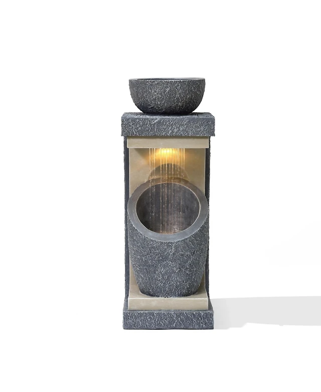 LuxenHome Gray Glen Pattern 16.7-Inch Tall MgO Urn Planter, Indoor and Outdoor