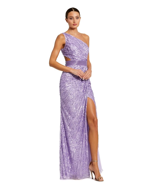 Mac Duggal Women's Ieena Jersey One Shoulder Illusion Cut Out Gown