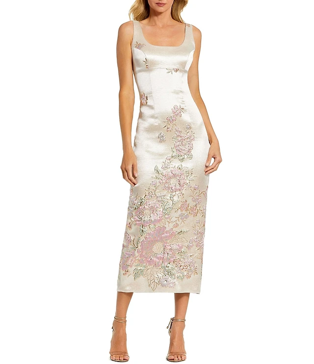 Mac Duggal Square Neck Sleeveless Floral Brocade Mermaid Gown