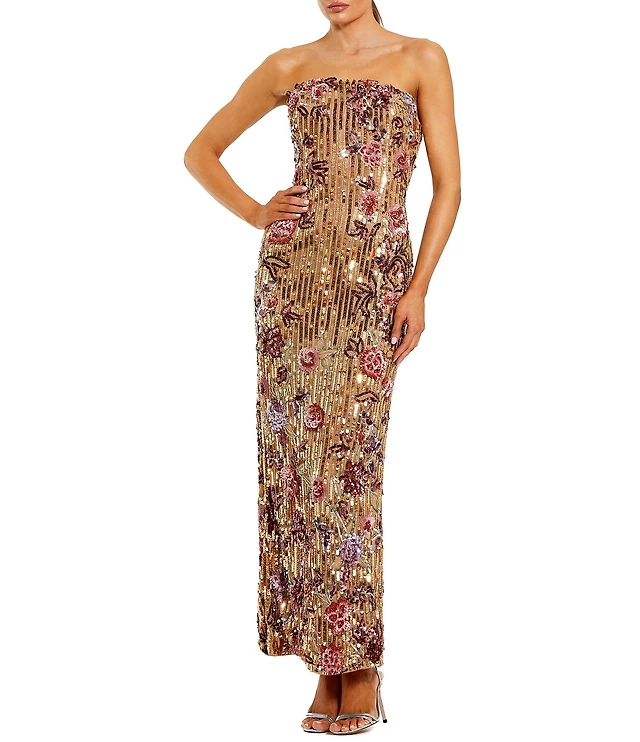 Mac Duggal Strapless Floral Sequin Column Gown