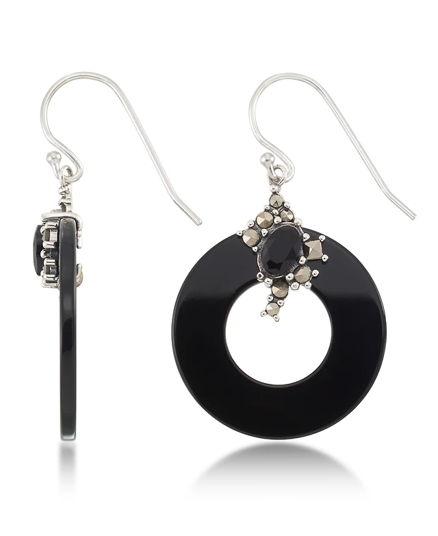 Onyx Wire Wrap Drop Earrings in 10k Gold
