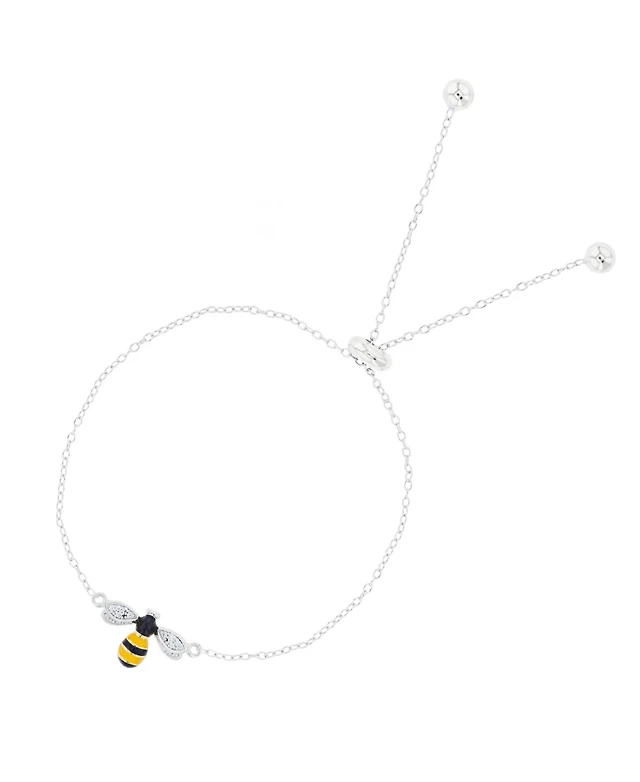 Diamond Accent S Link Adjustable Bolo Bracelet in Silver Plate