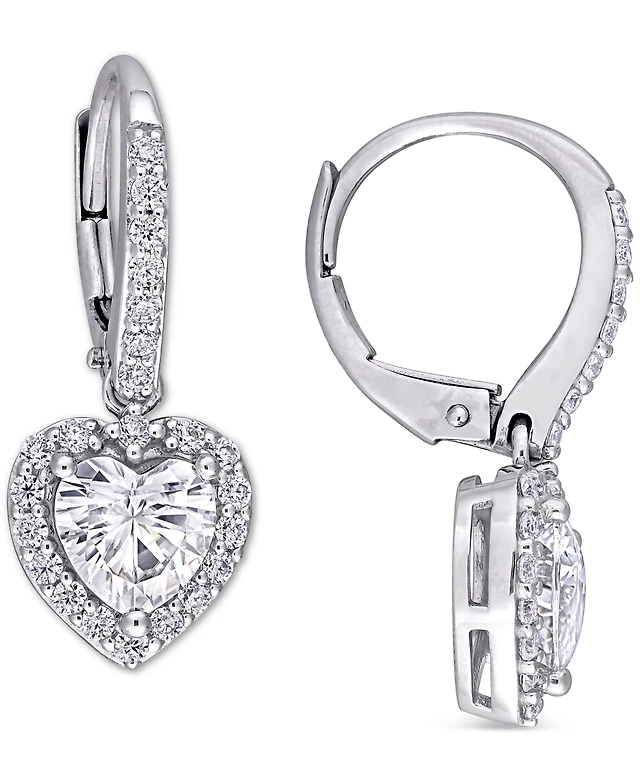 Lab-Created Moissanite Heart Leverback Earrings (4 ct. t.w.) in Sterling Silver
