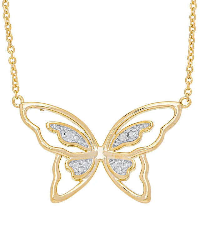 Diamond Accent Cat Pendant 18" Necklace in 14K Gold Plate