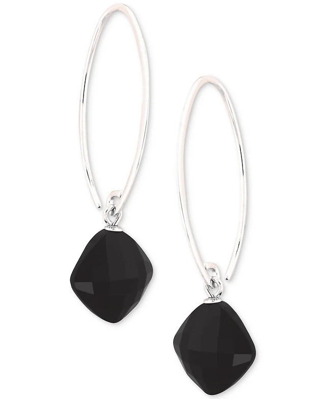 Onyx & Diamond Accent Rectangle Stud Earrings Sterling Silver (Also Turquoise Labradorite)