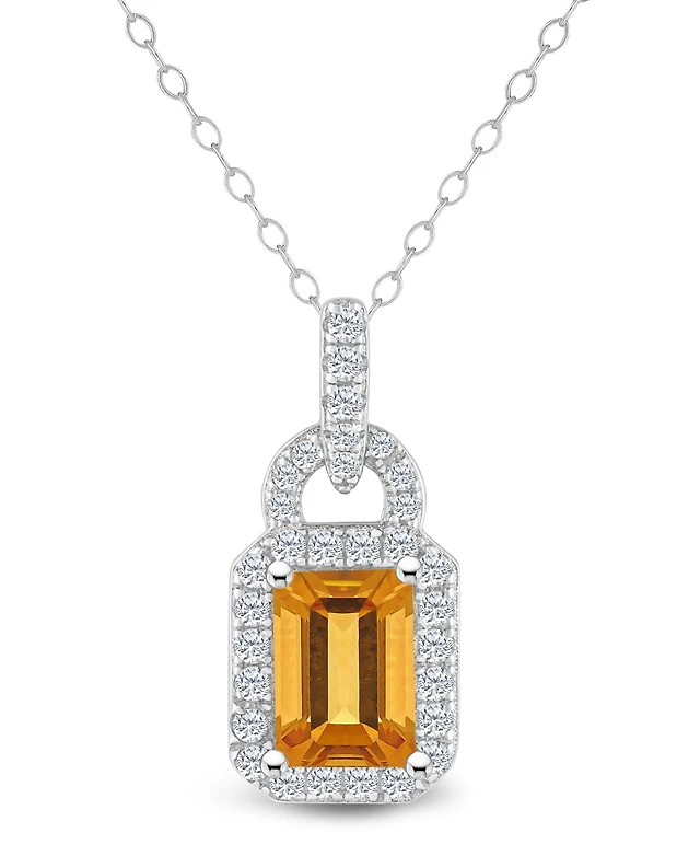 Macy's Women's Citrine (2-3/4 ct.t.w.) and Diamond Accent Pendant Necklace in Sterling Silver