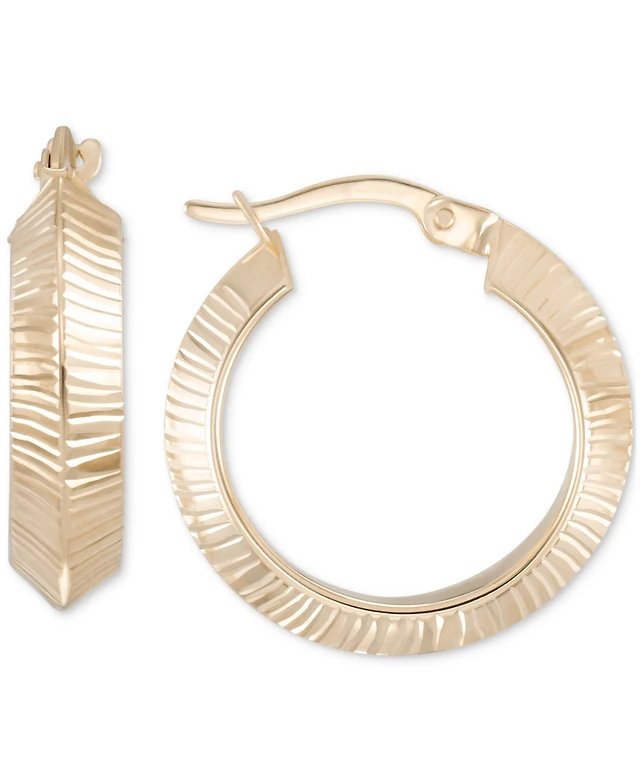 Textured Angular Small Hoop Earrings in 10k Gold, 7/8"