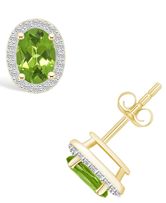Macy's Peridot (1-2/5 ct. t.w.) and Diamond (1/5 ct. t.w.) Halo Studs in Sterling Silver
