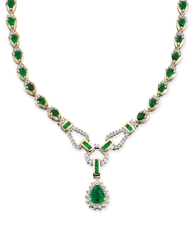 Lab-Grown Emerald Station Figaro Collar Necklace (1-1/5 ct. t.w.) in 14k Gold-Plated Sterling Silver, 16" + 2" extender