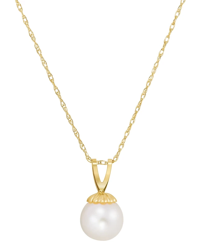 Cultured Freshwater Pearl (8mm) & Cubic Zirconia 18" Pendant Necklace in 14k Two-Tone Gold-Plated Sterling Silver
