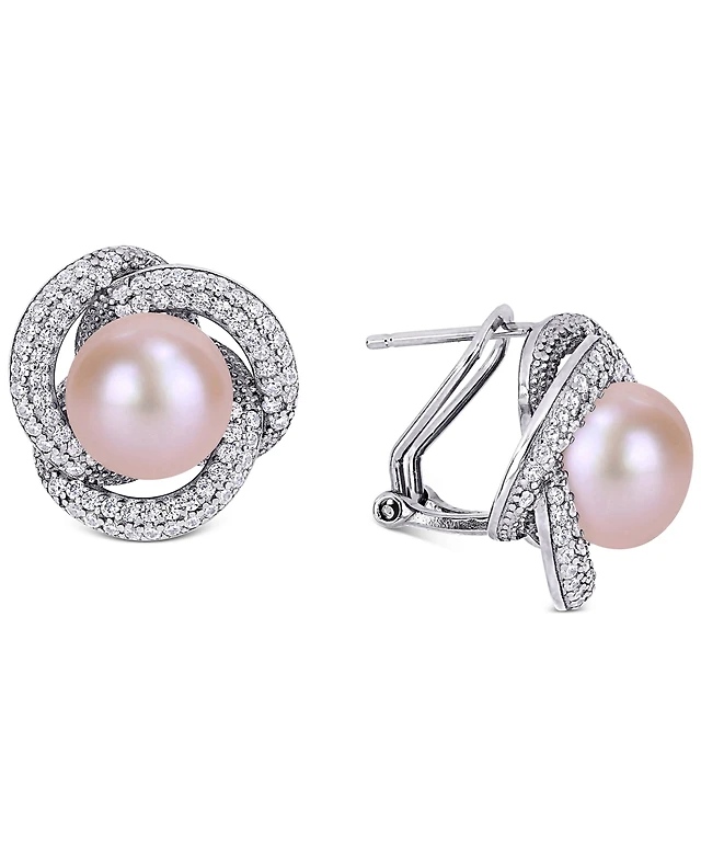 Cultured Freshwater Pearl & Diamond Accent Stud Earrings Sterling Silver (Also Onyx, Labradorite &Turquoise)