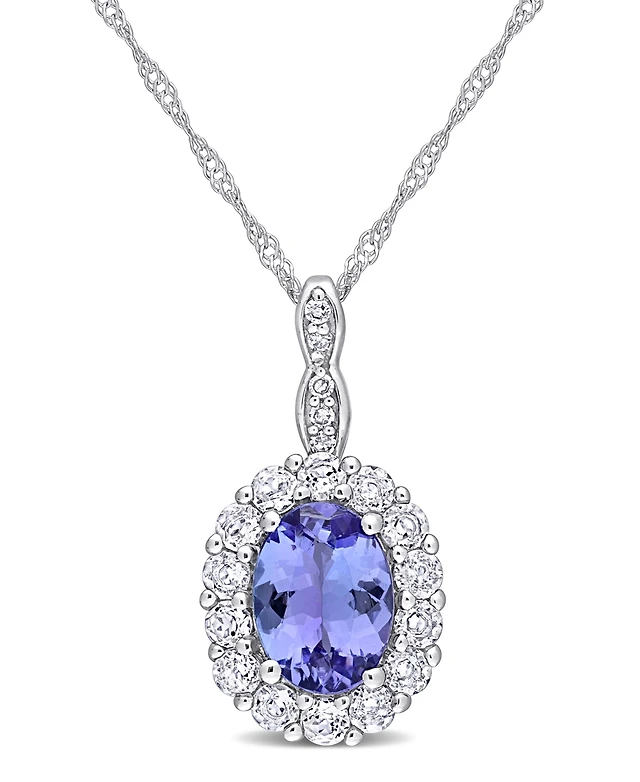 Lab-Grown Blue Sapphire (5/8 ct. t.w.) & Lab-Grown White Sapphire (1/3 ct. t.w.) Halo 18" Pendant Necklace in 14k Gold (Also in Citrine & Lab-Grown Op
