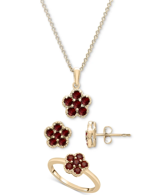 3-Pc. Set Amethyst (2-1/8 ct. t.w.) & Lab-Grown White Sapphire (1/3 ct. t.w.) Heart Ring, Pendant & Bracelet in 14k Gold-Plated Sterling Silver (Also