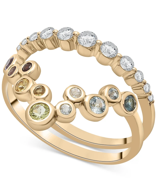 2-Pc. Set Multi-Gemstone Bezel & Accent Rings (3/4 ct. t.w.) in 14k Gold-Plated Sterling Silver