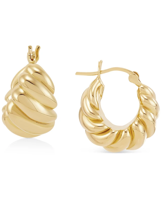 Textured Graduated Oval Hoop Earrings in 14k Gold, 3/4"
