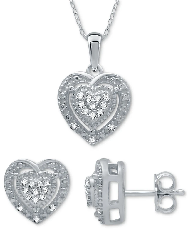 Sterling Silver Diamond Double Heart Pendant Necklace (1/10 ct. t.w.)
