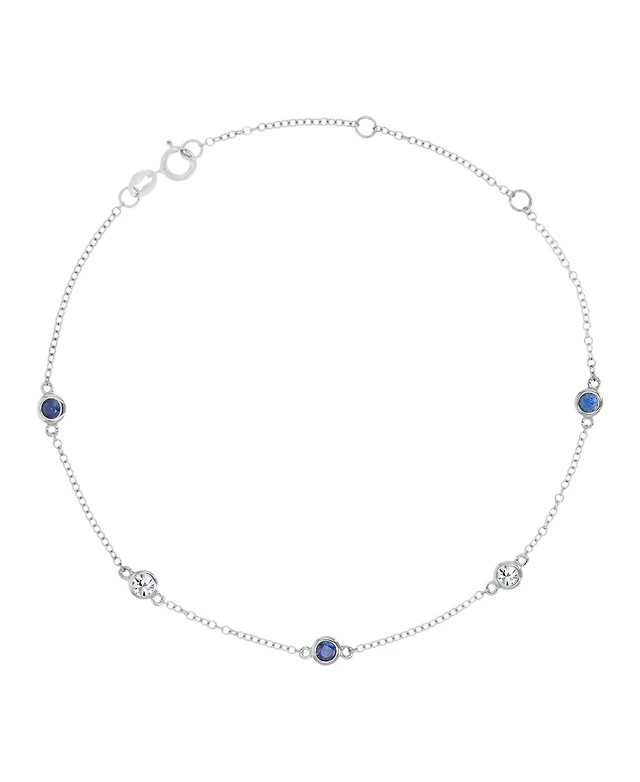 Macy's White Sapphire (0.45 ct. t.w.) & Blue Sapphire (0.45 ct. t.w.) Bezel Bracelet in 14k White Gold
