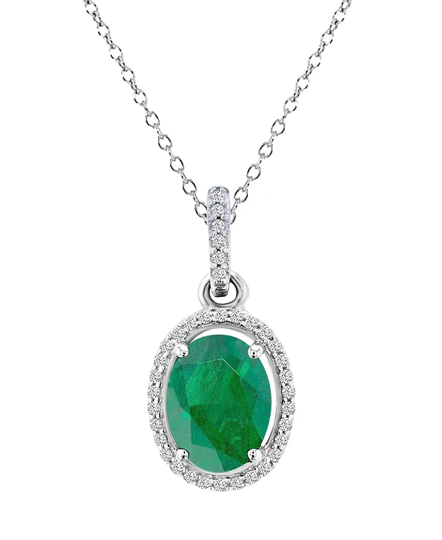 Macy's Emerald (0.76 ct. t.w.) & Diamond (0.105 ct. t.w.) Halo Necklace in 14K White Gold