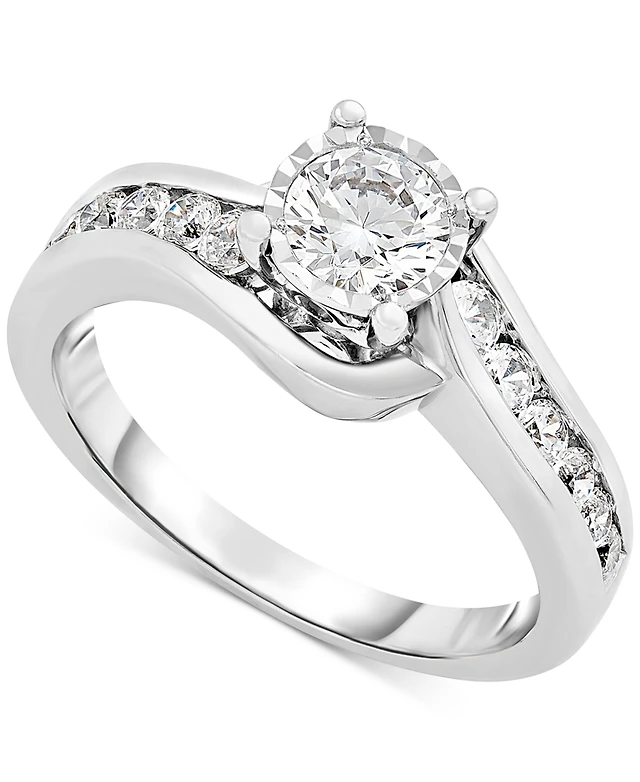 Diamond Knife Edge Milgrain Bead Engagement Ring (7/8 ct. t.w.) in 18k White Gold
