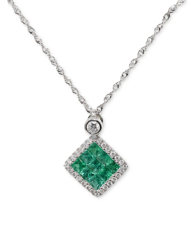 Emerald (2 ct. t.w.) & White Sapphire (1/2 ct. t.w.) Oval Halo 18" Pendant Necklace in 10k Gold-Plated Sterling Silver (Also in Ruby & Sapphire)