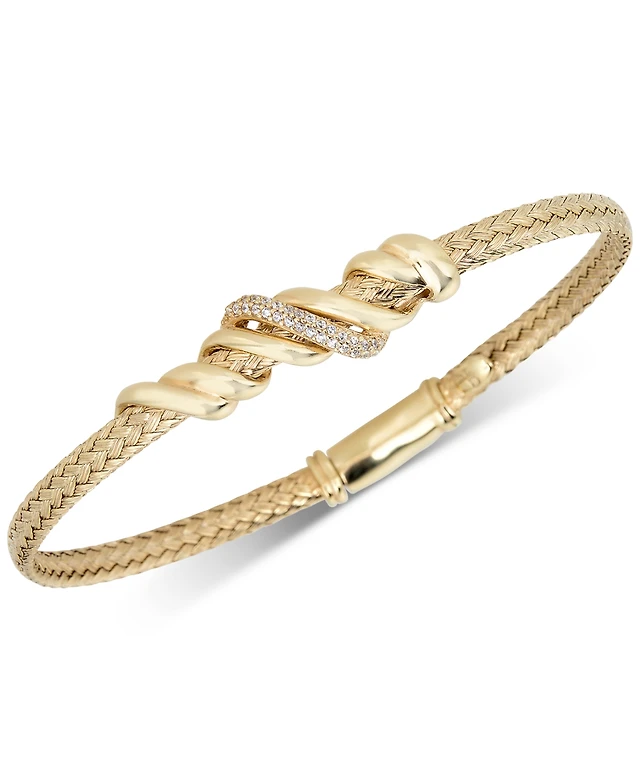 Cubic Zirconia Tree Of Life Adjustable Bolo Bracelet In Silver Plate