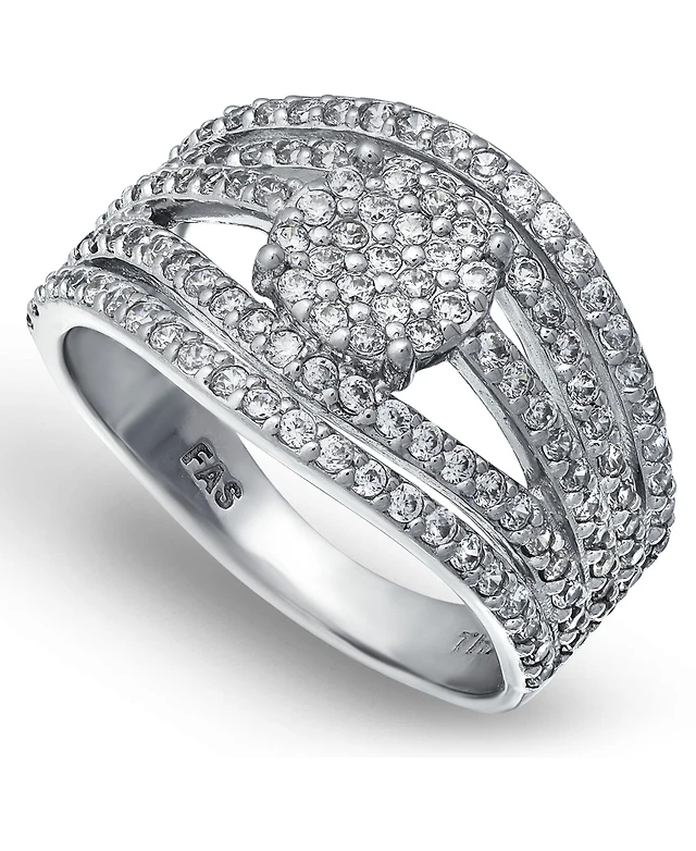 Multi Cut Cubic Zirconia Eternity Band Rhodium Plated Sterling Silver
