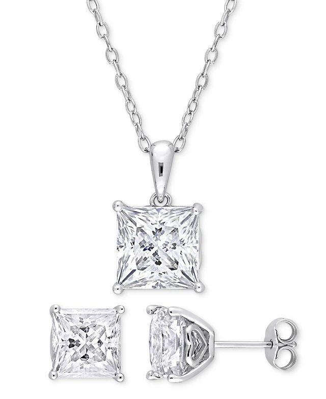 Citrine (2 ct. t.w.) & Lab-Created White Sapphire (1/4 Square Halo Stud Earrings 10k Gold (Also Additional Gemstones)
