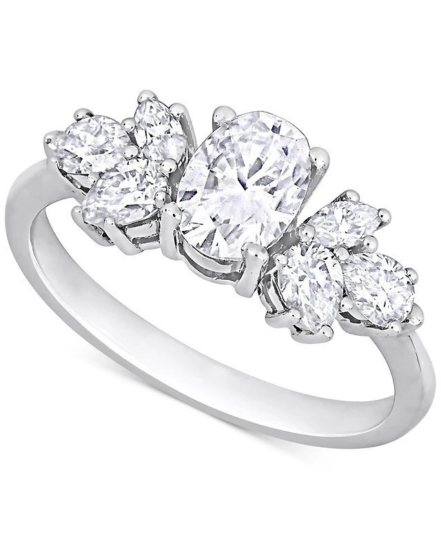 Moissanite Pear- & Emerald-Cut Cuff Ring (2-1/8 ct. t.w.) Sterling Silver