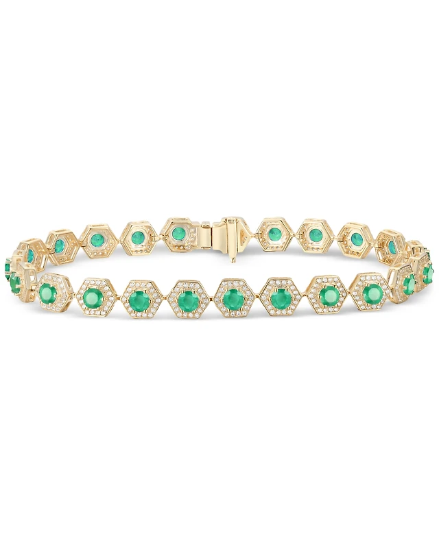Lab-Grown Emerald Five Stone Figaro Link Bracelet (2-1/4 ct. t.w.) in Yellow-Plated Sterling Silver