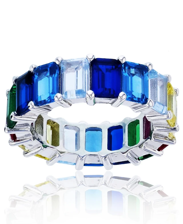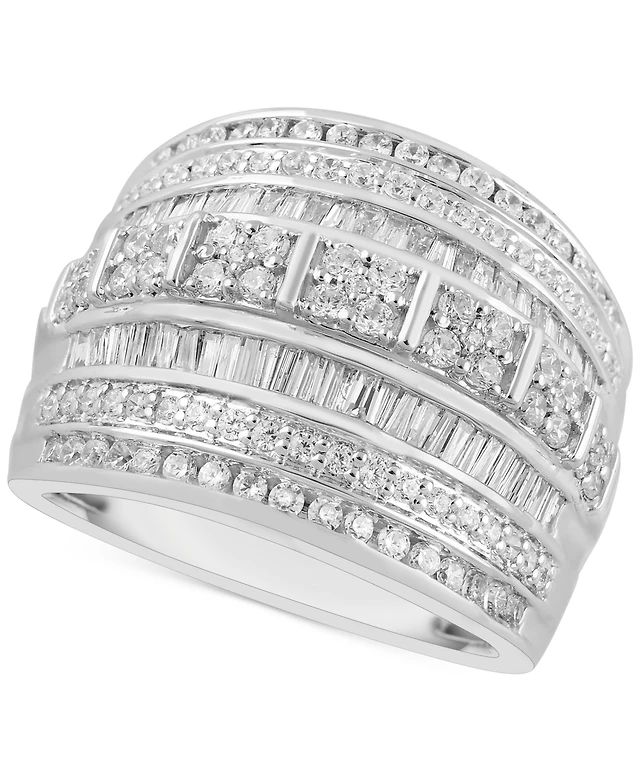 Cubic Zirconia Three Row Baguette Statement Ring Sterling Silver