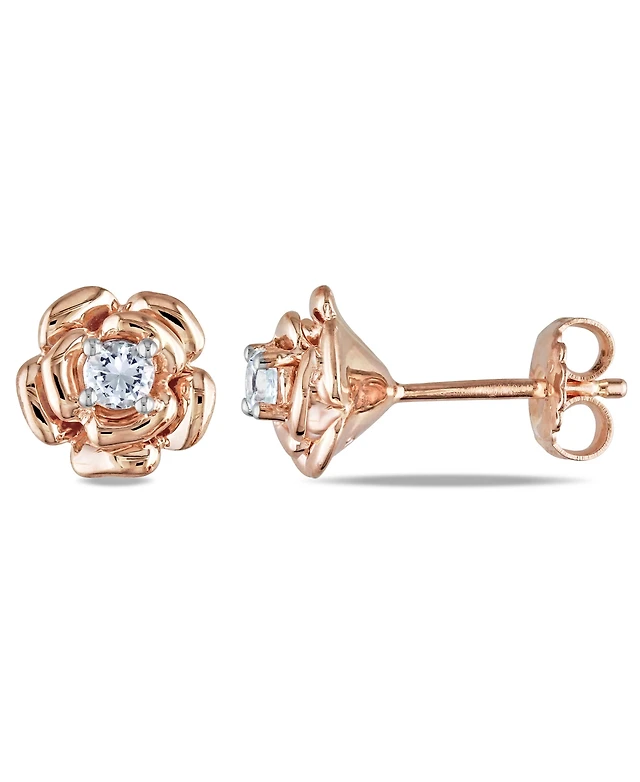 Lab Grown White Sapphire (1/3 ct. t.w.) Flower Stud Earrings in 18k Rose Gold Over Silver