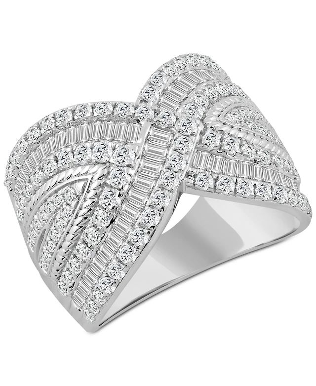 Diamond Round & Baguette Crossover Ring (3/4 ct. t.w.) Sterling Silver