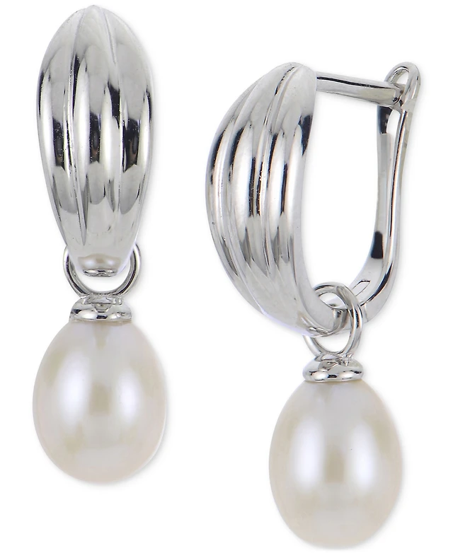 Macy's Freshwater Cultured Pearl Drop Cubic Zirconia Hoop Post Earrings