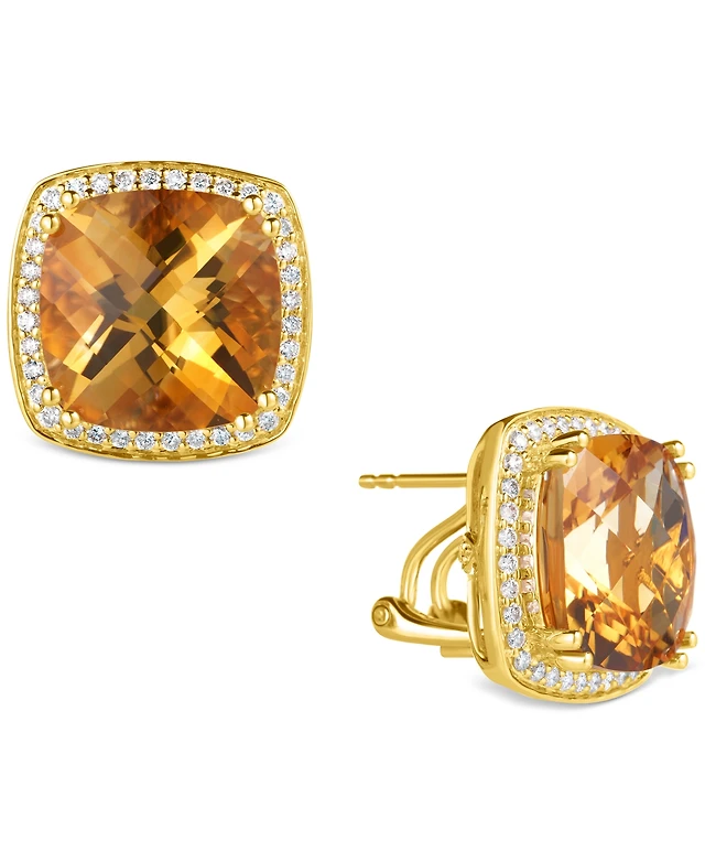 Macy's Gemstone and Diamond ((1/5 ct. t.w.) Halo Stud Earrings 10k White Gold (also Yellow Gold)