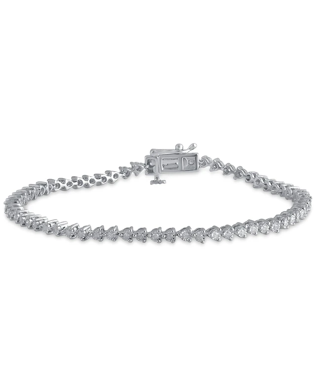 Diamond Accent Heart Link Bracelet Silver Plate, Gold Plate or Rose