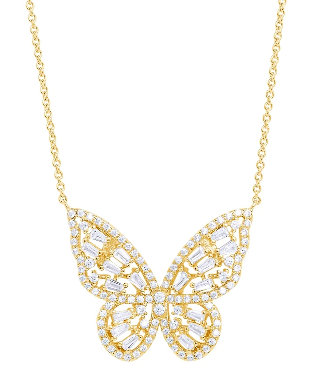 Cultured Freshwater Pearl (9mm) & Diamond (1/5 ct. t.w.) Butterfly 17" Pendant Necklace in 10k Gold