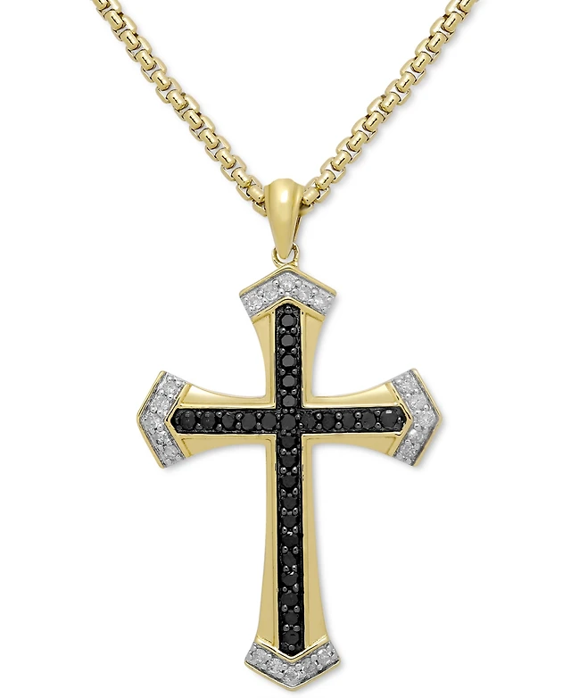 Black & White Diamond Cross 18" Pendant Necklace (1/6 ct. t.w.) in Sterling Silver